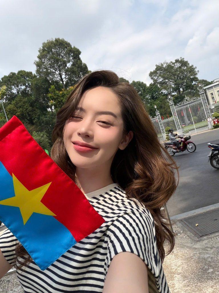 Huỳnh Thị Thanh Thủy chọn cách thể hiện gần gũi hơn khi check-in tại Dinh Độc Lập. Đây là địa danh lịch sử gắn liền với sự kiện 30/4/1975, nên mỗi khung hình đều mang ý nghĩa đặc biệt. Phong cách giản dị của cô tạo nên sự cân bằng giữa yếu tố thời trang và giá trị lịch sử.