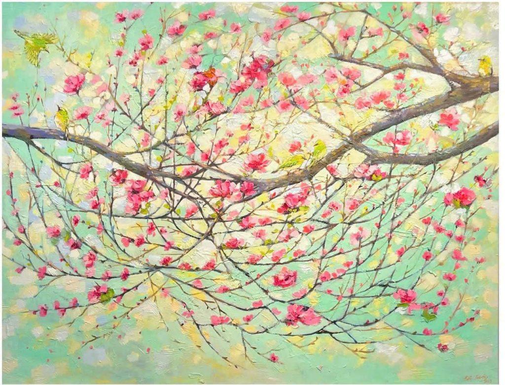 Điều làm nên dấu ấn riêng của hoạ sĩ Đắc Tưởng là cách anh xử lý màu sắc theo cảm xúc, không rập khuôn hiện thực. Anh không tìm cách sao chép thiên nhiên, mà vẽ cái “thật” trong cảm nhận – cái thật của tâm hồn. Vì thế mà mỗi bức tranh của anh luôn có sự cân bằng giữa chân thực và mộng mị. Đó không chỉ là cảnh sắc Tây Bắc mà còn là tình cảm, hơi ấm và sự sống của con người được thể hiện qua từng ánh nhìn, dáng ngồi hay nụ cười bình dị giữa núi rừng.