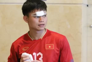 Hậu vệ Đội tuyển Việt Nam đã phải khâu 7 mũi sau va chạm với cầu thủ Trung Quốc