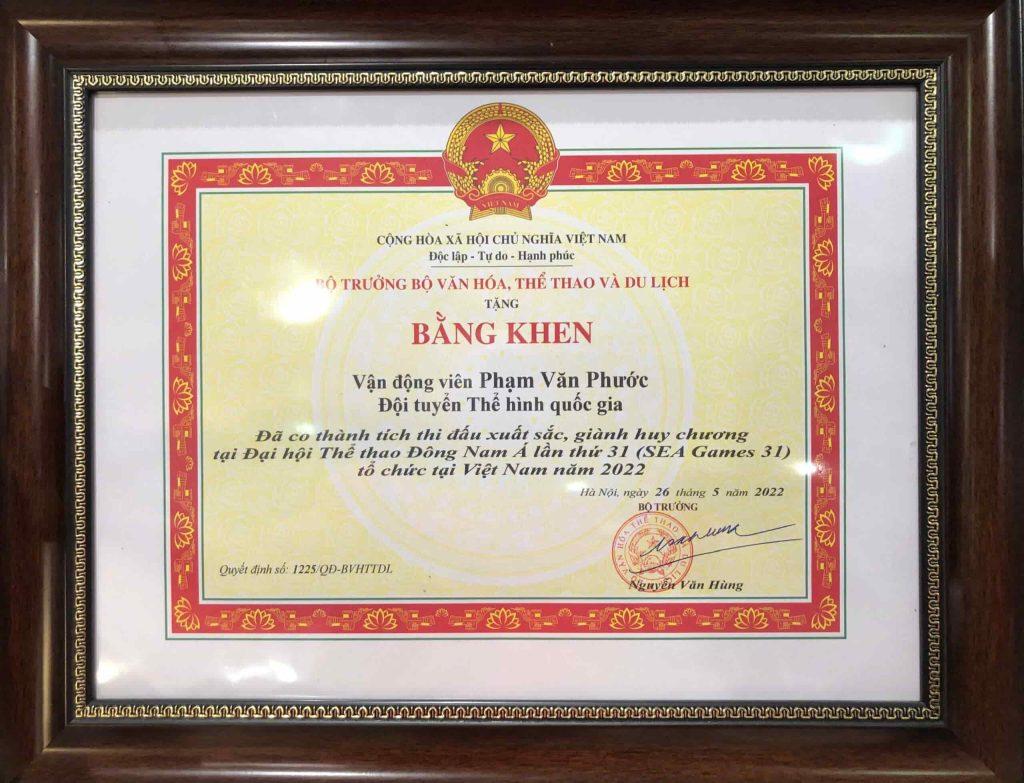 Từ năm 2022, Phạm Văn Phước bước vào giai đoạn đỉnh cao với những chiến thắng vang dội. Anh mang về huy chương Vàng Châu Á và huy chương Bạc SEA Games, một lần nữa khẳng định tài năng và đóng góp quan trọng cho bảng thành tích của thể thao Việt Nam. Đặc biệt, trong hai năm 2023 và 2024, Phước liên tiếp giành huy chương Vàng Thế giới, củng cố vị thế là một trong những vận động viên thể hình xuất sắc nhất thế giới. Thành tích này không chỉ khẳng định bản lĩnh của anh mà còn đưa thể hình Việt Nam vươn xa trên đấu trường quốc tế.